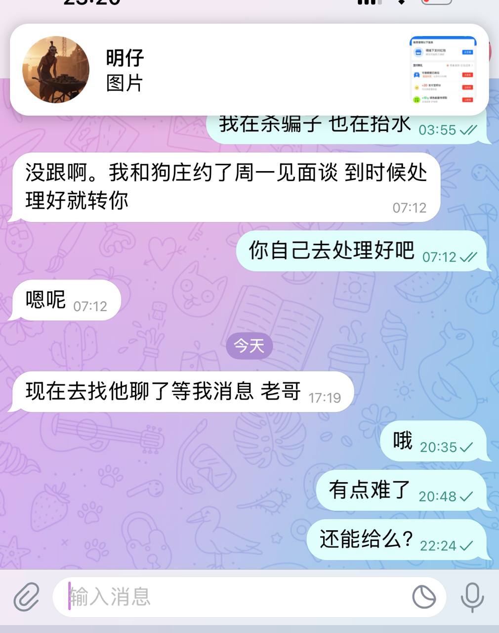 真的有时候神经很多,说的一些神经话,这是代收码 每天都不知道要收多少钱,我特么骗你1888?卖赛价格我自己定,也就是给你们积累资金而已,正常合作都是几十万起 傻逼不要来 很烦 简单点没那么复杂