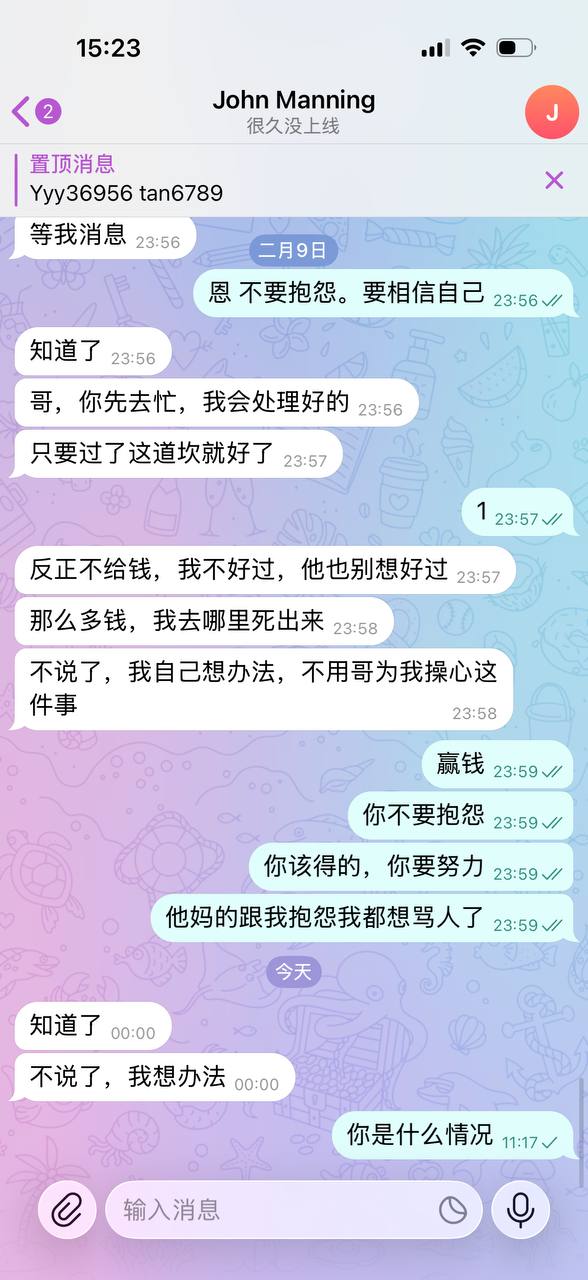 很多兄弟,不要急,资金少没关系,慢慢来人品一定要好,賺钱的机会很多,真的马上过年了答应我能不赌就不要赌了,自己裸杀包死的,就连协议有时候都要输,不要说自己裸,一百场球很少真踢,都是假球,只是演技多好而已,尤其nba卡盘卡到什么程度? 在频道我说过很多次这些话,听进去的希望多点,能拦下一个就拦下一个,我们项目很多,新来的多看看频道历史,我脾气也没那么差,想找我随时找,心情很不好我不忙都可以给你当当心理辅导师,那些输很难的兄弟,既然赌了就愿赌服输,没什么大不了,回到第一句话只要人品好,賺钱机会总是很多,维系好自己做人的原则,别赌的一无是处,别深陷。 实话实说 见过太多赌狗 赌特么比吸毒厉害多了 好人可以赌成坏人 别做让自己看不起自己的人,选择了输了就愿赌服输,及时止损不晚,啥时候想找我了随时,自己规划好资金慢慢理财,体育就是个长期理财项目,地球不倒 体育不息。