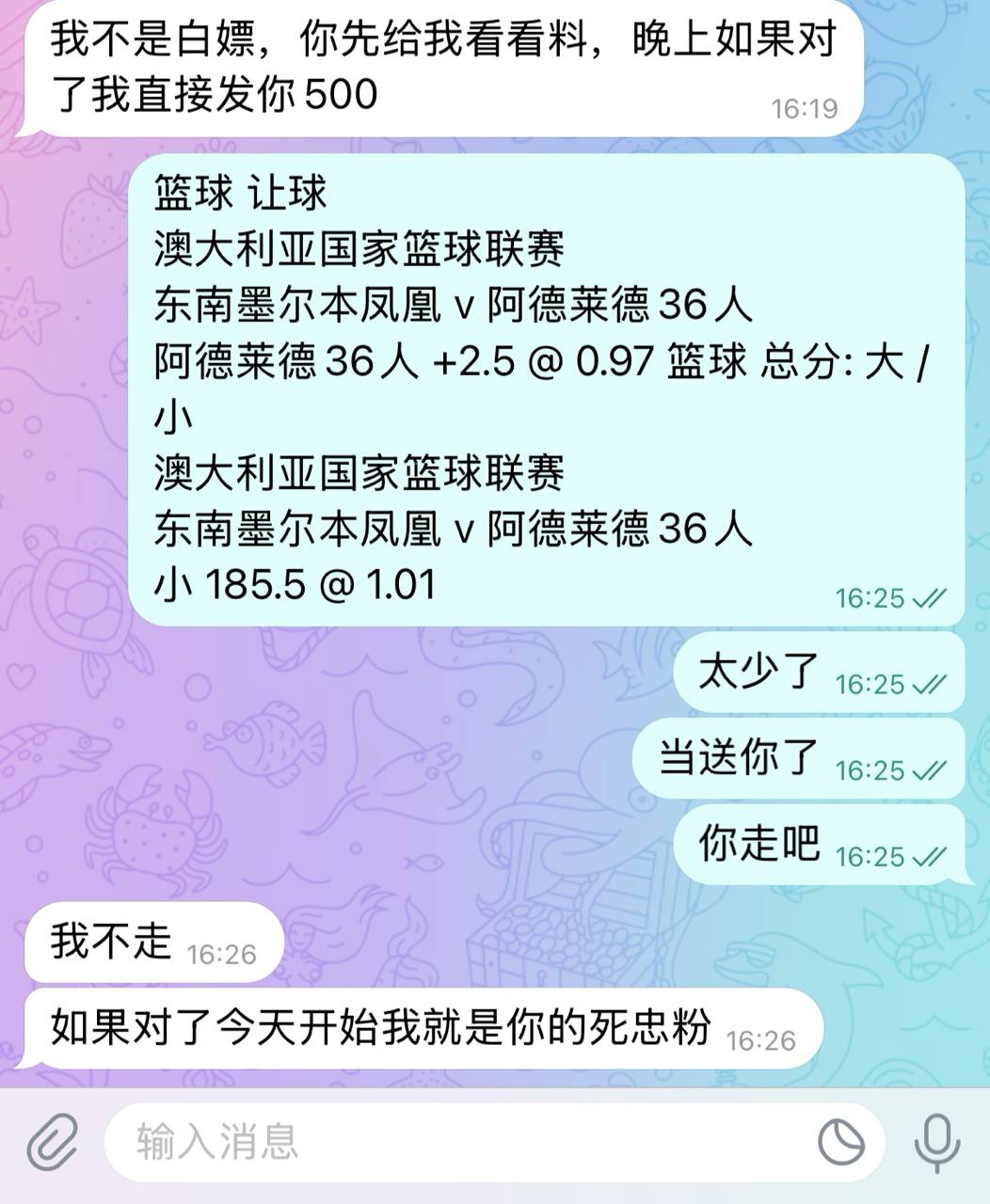 滚球白嫖的不要来 明白? 老子不是做慈善