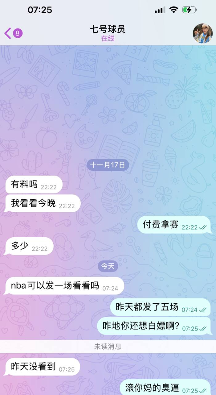 要就联系,自己考虑好 想清楚,不要老觉得自己很聪明 说的一些傻逼白痴话 还有要白嫖的 我想发也只会发频道 有什么资格私发你?
