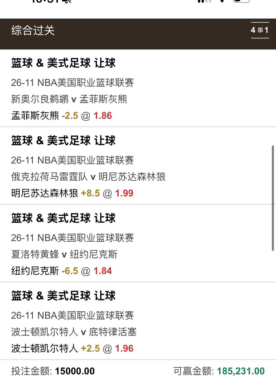算了 足球不出了 怕不稳 赛事太大,就打NBA吧 现在找我拿 NBA发给你们打了早盘早点休息
